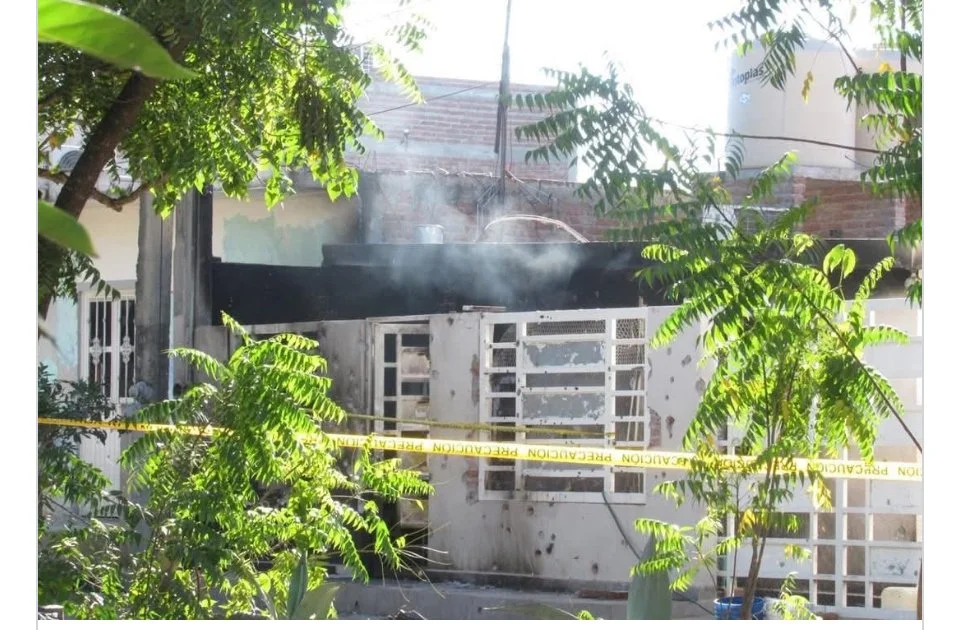 La casa acribillada e incendiada. El tiroteo duró tres horas, la pareja la defendió como los Numantinos de Cervantes, resistieron hasta su muerte. Las fuerzas armadas llegaron a poner la cinta amarilla y contar los casquillos percutidos.