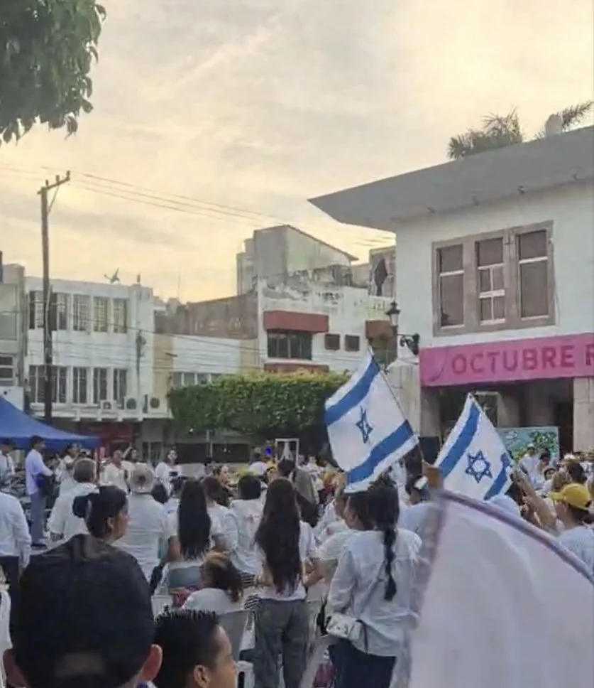 Ondean banderas de Israel, un país repudiado en el mundo por asesinar niñas, niños, mujeres y ancianos. Es el país genocida del pueblo de Palestina.