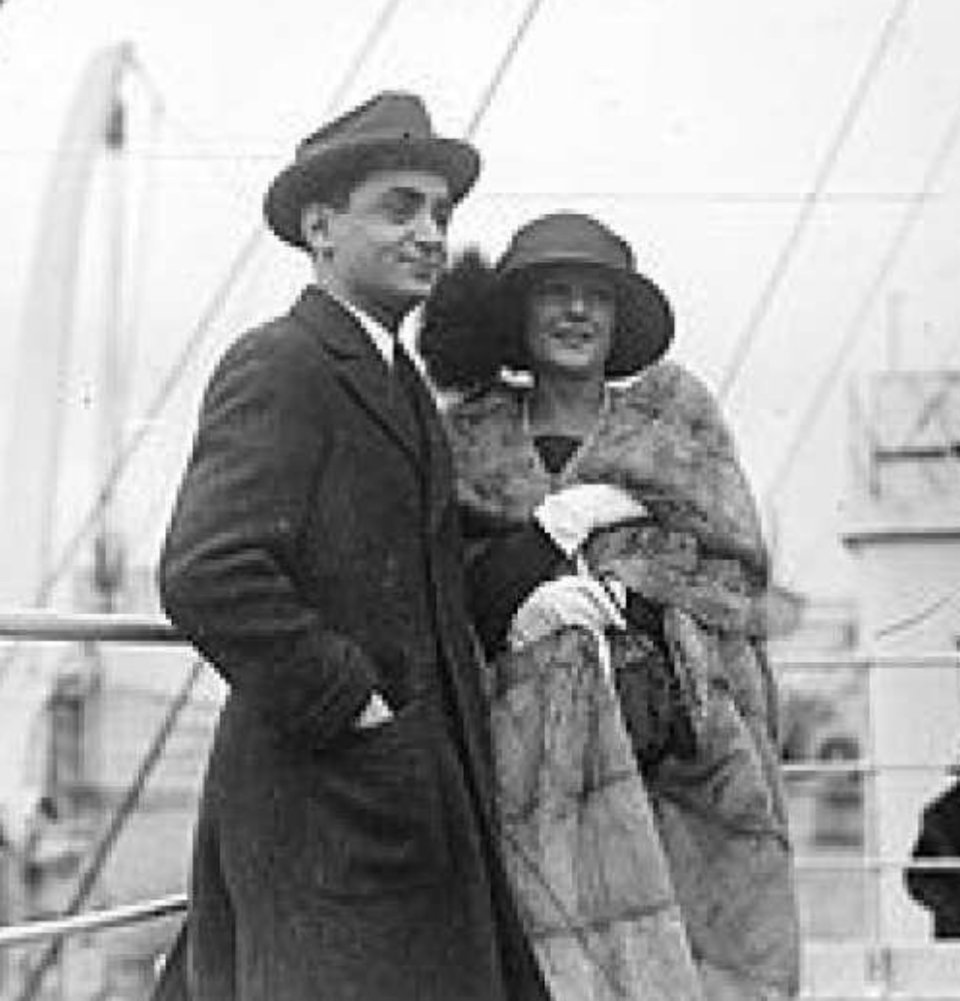 Irving Berlin con su primera esposa, la cantante Dorothy Goetz. En el barco rumbo a Cuba en 1912. El tenía 24 años y ella 20. A su muerte compuso uno de sus éxitos “When I lost you” ( Cuando te perdí ).