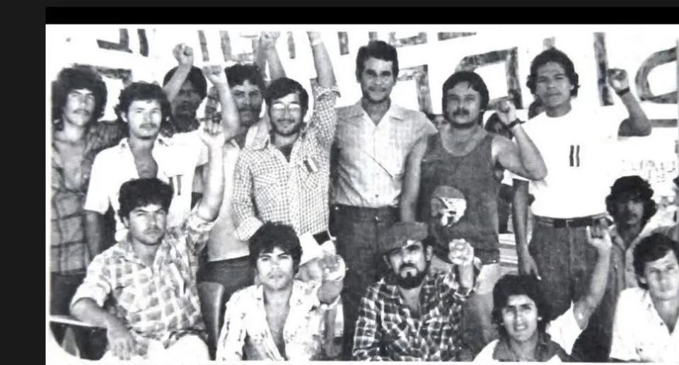En una lucha universitaria. Chema Adame al centro.