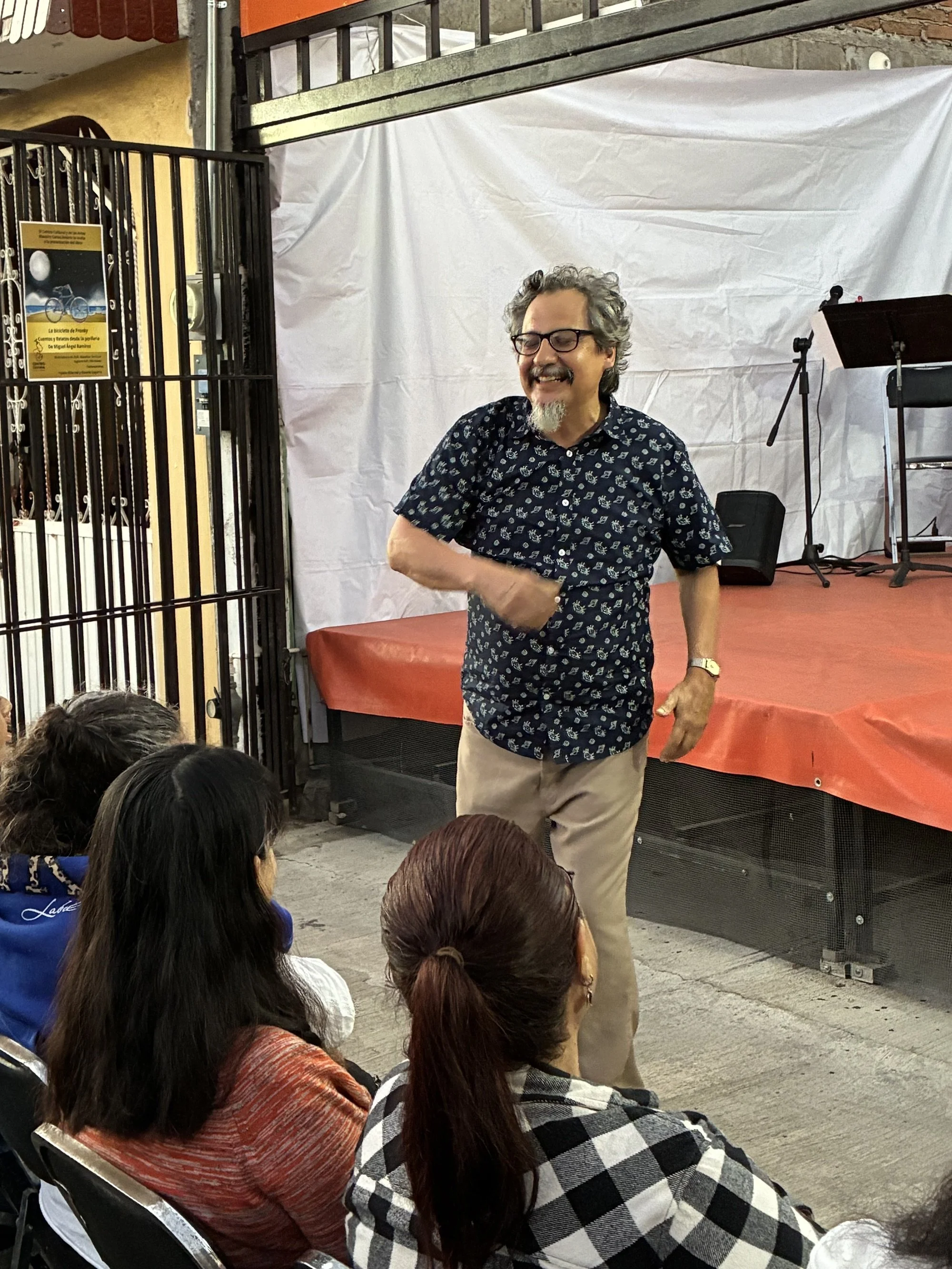 Ahí en el Centro Carlos Ambriz, a las 6 del anochecer, Yajaira Villareal, periodista y actriz (son memorables sus actuaciones en Teatro de Atril, con el querido Maestro Marco Escalante, recuerdo su caracterización de Susana San Juan de Pedro Páramo) y yo, comentamos, ante un nutrido público, el libro “la Bicicleta de Franky”, de Miguel Jardines, le agregó un subtítulo: “Cuentos y Relatos desde la Periferia”, y en efecto, todos los personajes viven en la orilla, en la marginalidad, desde el primer texto del chamaco imberbe y onánico que fisgoneaba el vértice púbico, el monte de venus, de su tía desnuda; hasta el veterano izquierdista que desde una cama de hospítal, atropellado por un carro de la transnacional Coca Cola, hace un balance de sus acciones revolucionarias y concluye que quiso cambiar la vida, pero lo vida lo cambio a él; tal como los “Viejos Lobos de Marx” de Gerardo de la Torre.