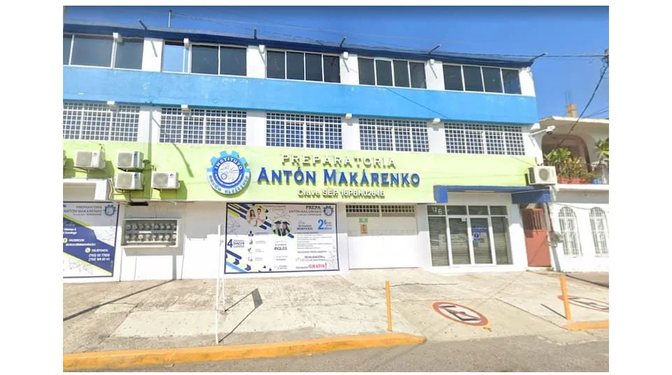 La Escuela Preparatoria “Antón Makárenko. En el centro del puerto Lázaro Cárdenas, sitio de la tragedia.