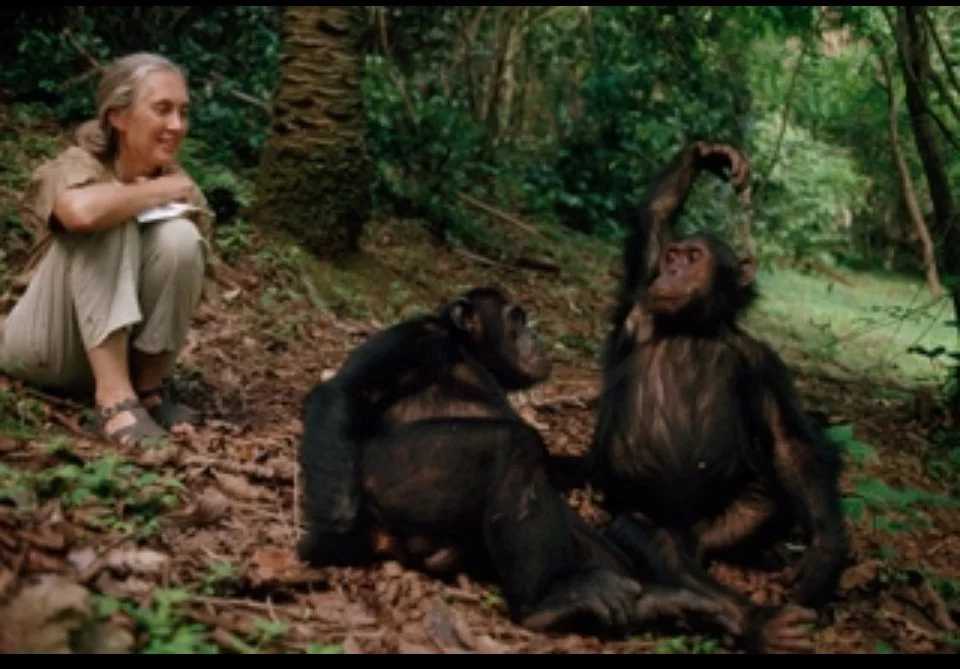 Jane Goodall, trabajó en Tanzania, en la Reserva Gombe, ahí, durante 30 años vivió y amó a los chimpancés; descubrió que tienen personalidad propia y sentimientos; pueden ser compasivos y altruistas; pero también hacer guerras atroces.