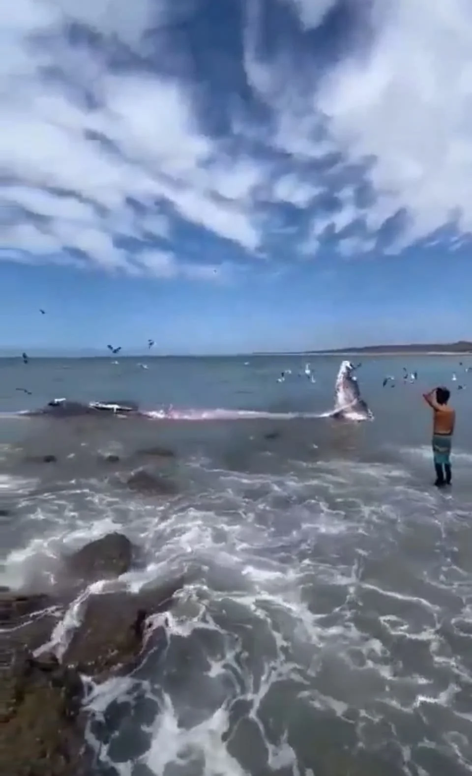El hombre mira impávido los esfuerzos de la ballena; lucha por volver a las aguas profundas. Llegó el martes 10 de marzo por la mañana a una zona rocosa de la Costa de Piaxtla, cerca de la boca de un estero. Es un rorcual tropical, que los marinos le llaman “ballena sardinera” porque se atraganta con enormes bocados de sardinas, también de anchovetas y no le hace el asco a las langostillas y cangrejos rojos. El hombre no puede hacer nada, la ballena se golpea contra las rocas filosas, ondea la aleta caudal, agoniza.