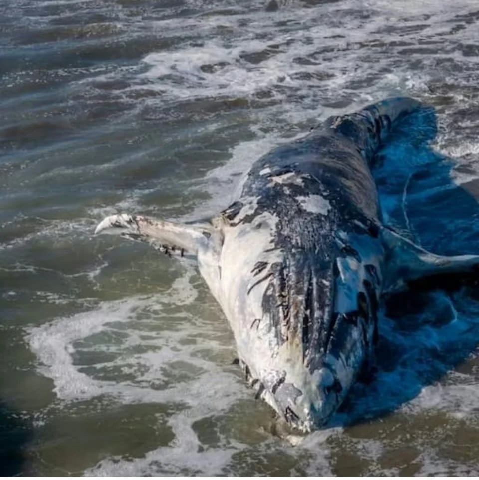 Quizá llegó a celebrar la cancelación del proyecto Gasero que SEMPRA California, junto con CFE-México, pretendía construir en Topolobampo y Ohuira; se extravió y vino a dar a las Barras de Piaxtla. Por las fotos, debe de medir poco más de 10 metros y el cuerpo ya difunto presenta las tres crestas, que van del rostro a los orificios nasales, caraterísticas de esta especie (Balaenoptera edeni en el trabalenguas de los Biólogos). No acostumbra navegar en pandilla, prefiere nadar en solitario.
