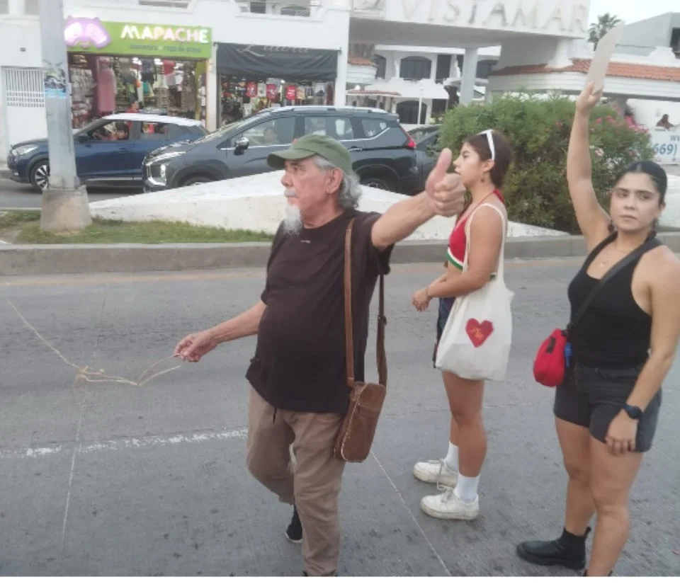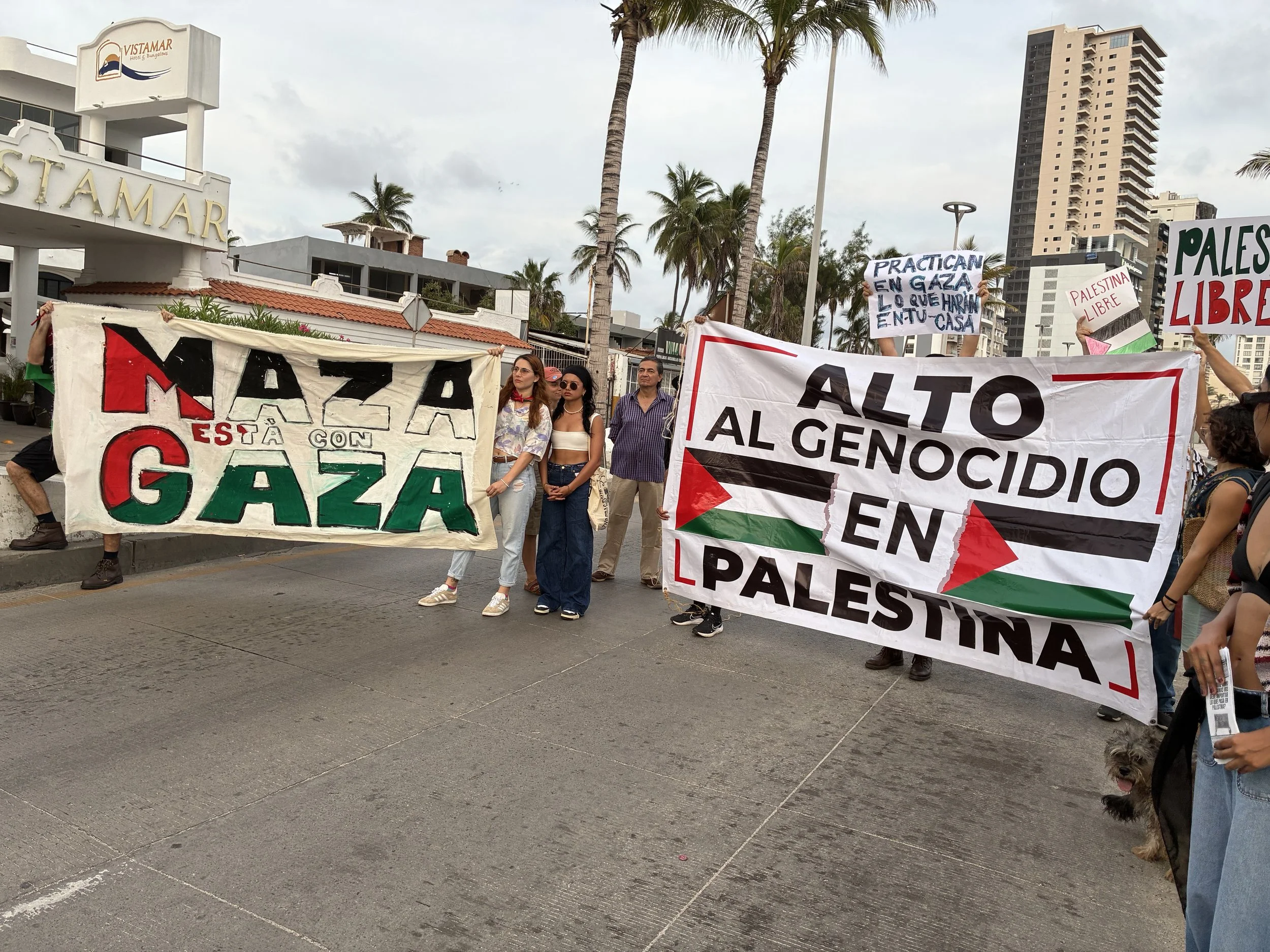 Aquí en el puerto, este domingo, salió un ciento, la mayoría jóvenes, nos colamos algunos viejos; son los mismos que han defendido el manglar del Arroyo, el Cerro del Faro, las Playas Libres; son la conciencia viva del Puerto. Inventaron la consigna: ¡Maza abraza a Gaza”, tomaron el pequeño “zócalo” de las letras del Valentino, hicieron barquitos de papel, simbolizando la Flotilla agredida, colgaron la emblemática tajada de sandía y por un rato se adueñaron de la Avenida Camarón-Sábalo.