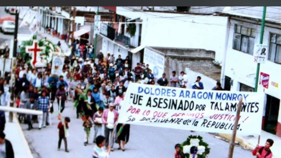 En mayo de 2019, marcha de protesta en Xalatlaco contra los Talamontes que asesinaron a un líder comunitario.