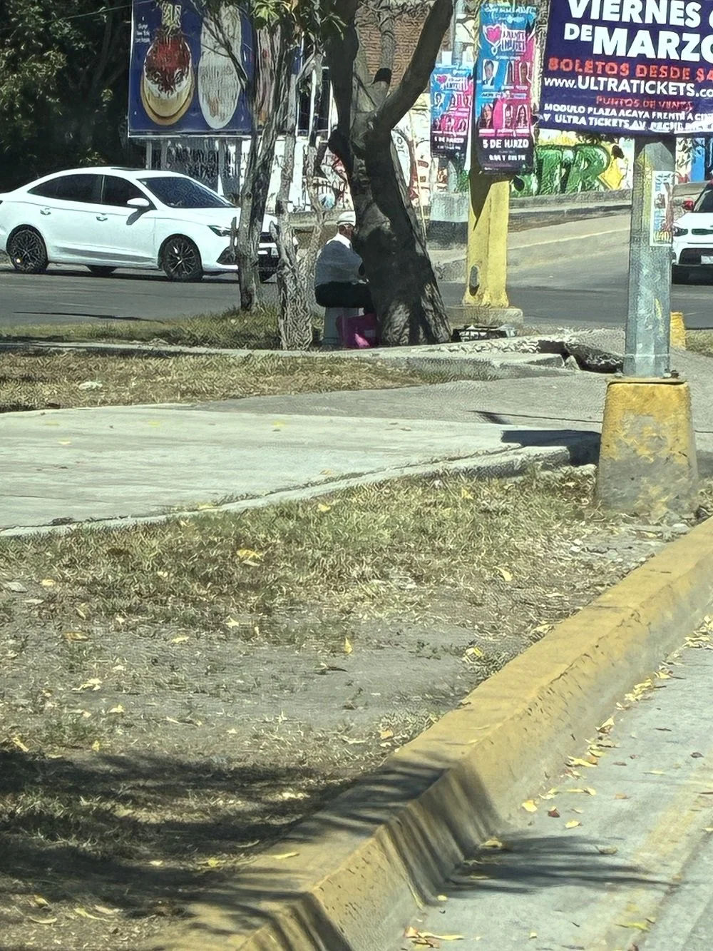 Justo más adelante, está el crucero de la Juan Pablo con Rigodanza, un punto de intenso tráfico vehicular; ahí de siempre eran los dominios de Don Neto, un señor en silla de ruedas que lentamente se lo está devorando la diabetes, se pone a las 8 de la mañana y se va a la hora de la comida; obligado darle una moneda al paso y así satisfacer nuestro sentido de piedad cristiana; pero ahora resulta que esa codiciada esquina ha entrado en conflicto, la invadió un extraño, un señor corcavado armado de un pavoroso palo-bastón, un costal y un bote alcancía, es competencia desleal ya que el se desplaza con agilidad haciendo sonar el botecito.