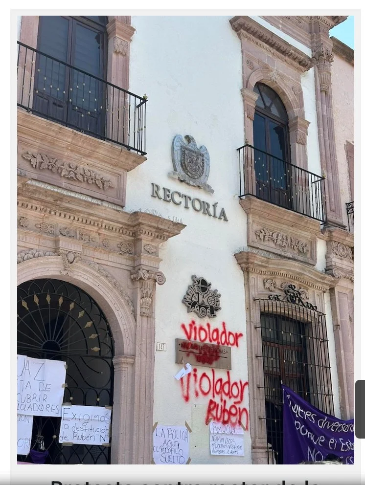 Eso hicieron con el ex-rector. Pagó multa y Lo dejaron libre el 16 de mayo del 2025. En La UAZ los estudiantes se fueron a huelga, la consigna fue “Un violador no puede ser Rector”. Lo destituyeron del cargo y también de su nombramiento de Profesor y apenas el 10 de Noviembre, el Sistema Nacional de Investigadores (SNI) lo dio de baja.