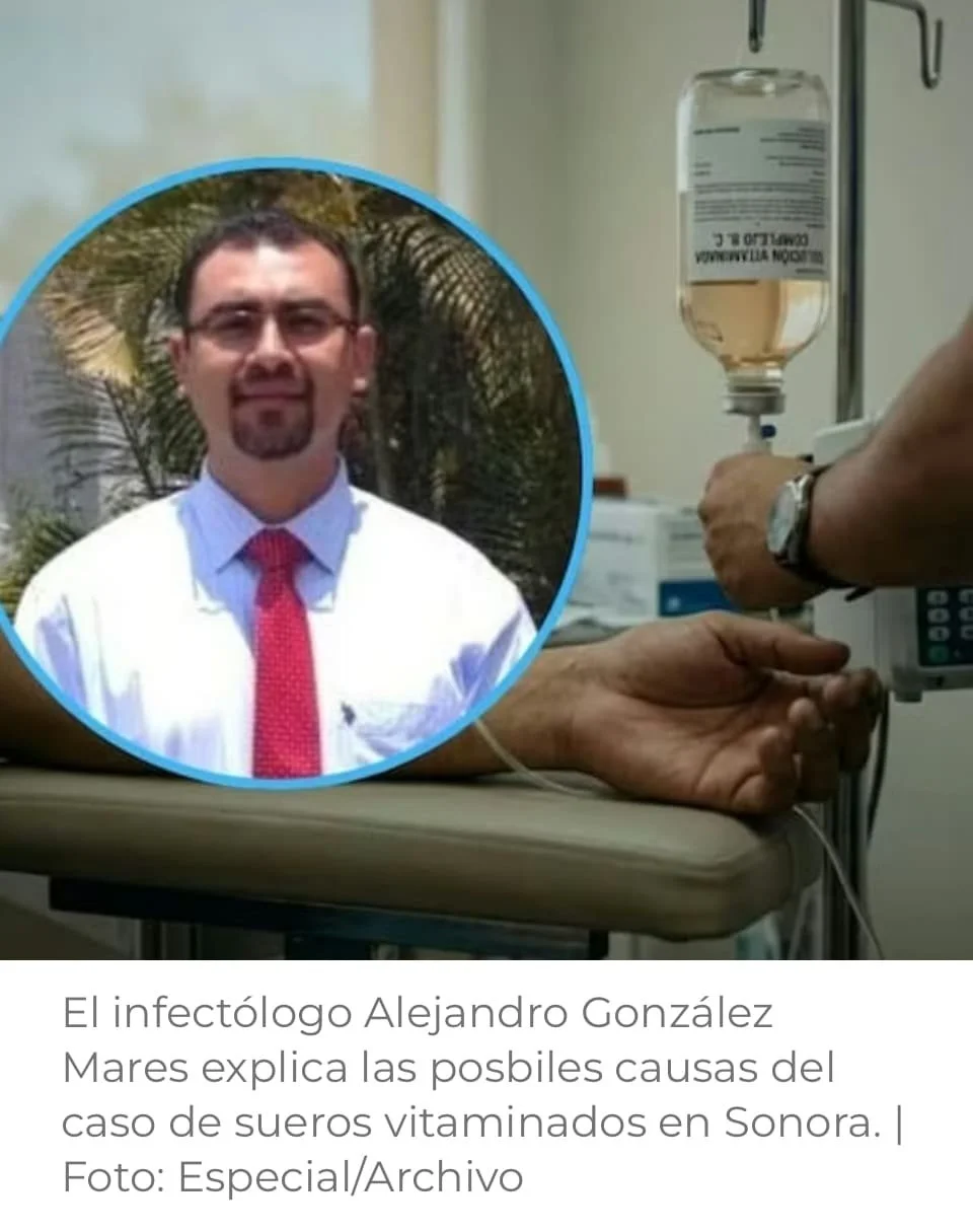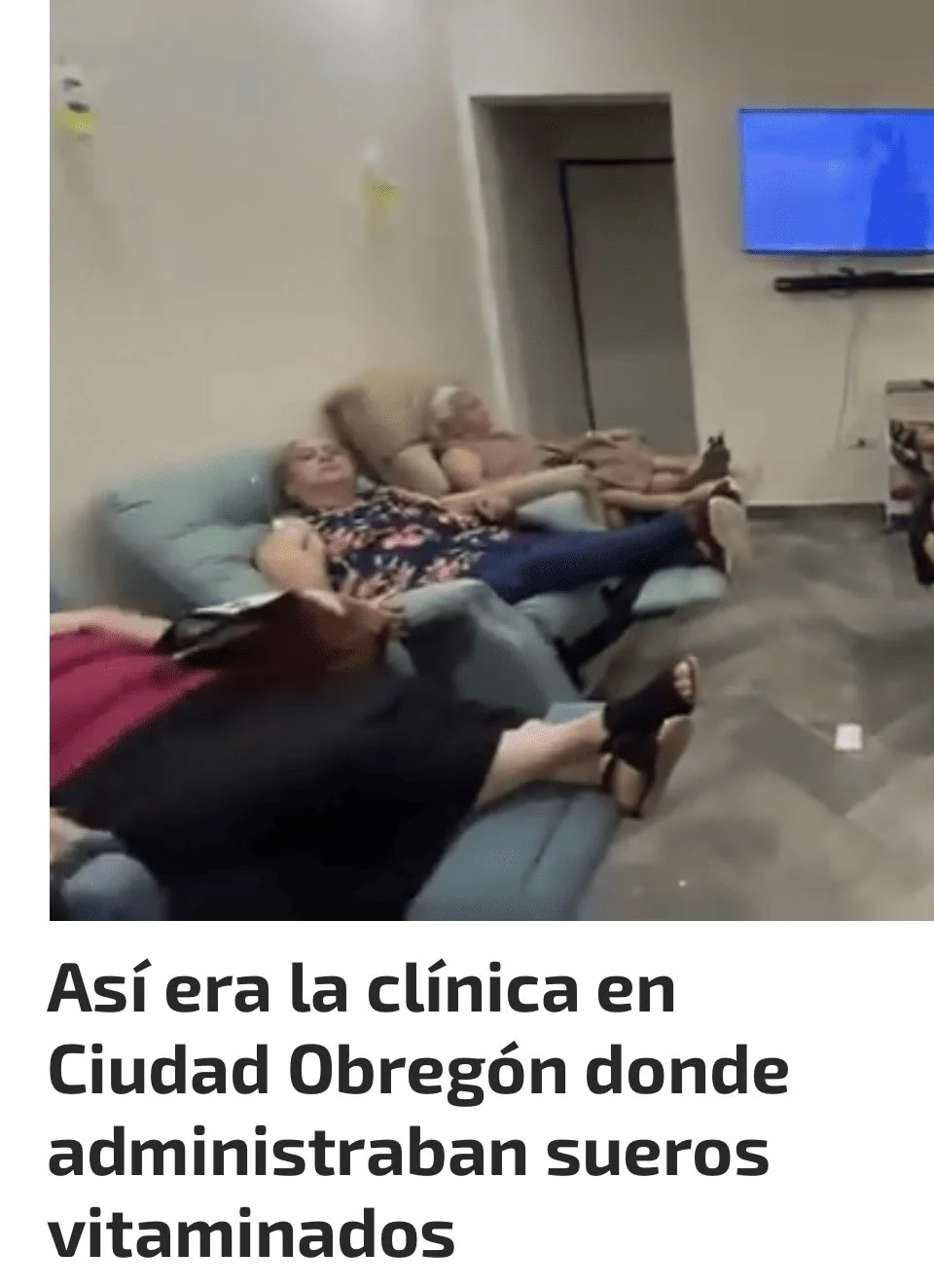 La Terapia Intravenosa, el Goteo del Bienestar o la “Vitamin drip”, ha proliferado en clínicas de medicina alternativa (algunas clandestinas), que incluso ofrecen servicio a domicilio; ese es (o era) el negocio de la Clínica “Medicina Biológica Celular”, con matriz en Hermosillo y sucursal en Obregón; lo de “Celular”, viene de que superó al Dr. Myers, al coctel le agregó supuestas Células Madre. La clínica funcionaba con todos los permisos de sanidad, acreditada, pero nunca supervisada.