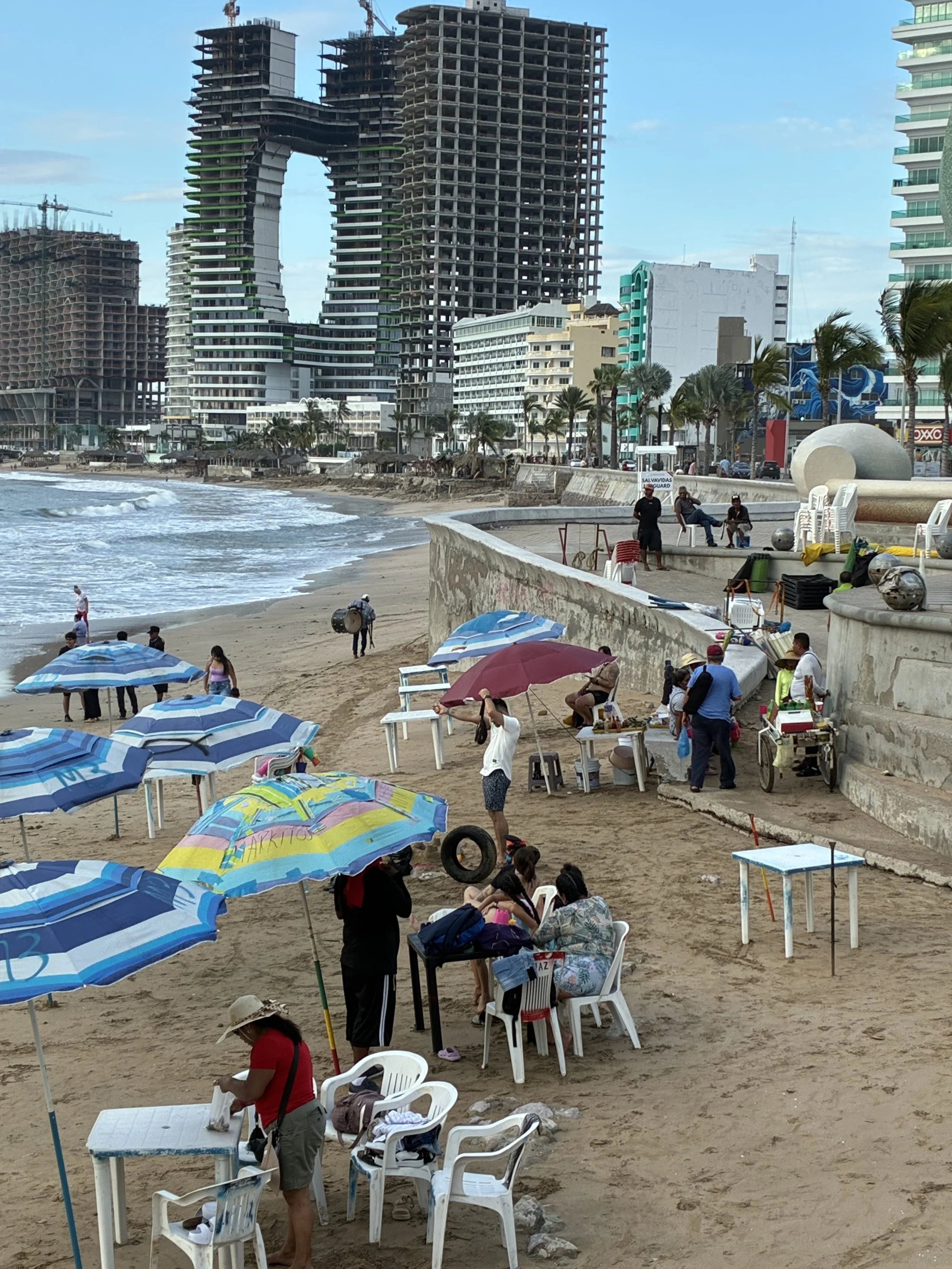 Cruzando la calle, el “Parque Martiniano”, debe su nombre al héroe del combate a la peste bubónica durante 1902; apenas tiene dos columpios, dos tranca-palancas y una resbaladilla. Nomás. El mejor servicio es una regadera improvisada que funciona como baño público, ahí recalan los bañistas a tumbarse la sal y la arena.