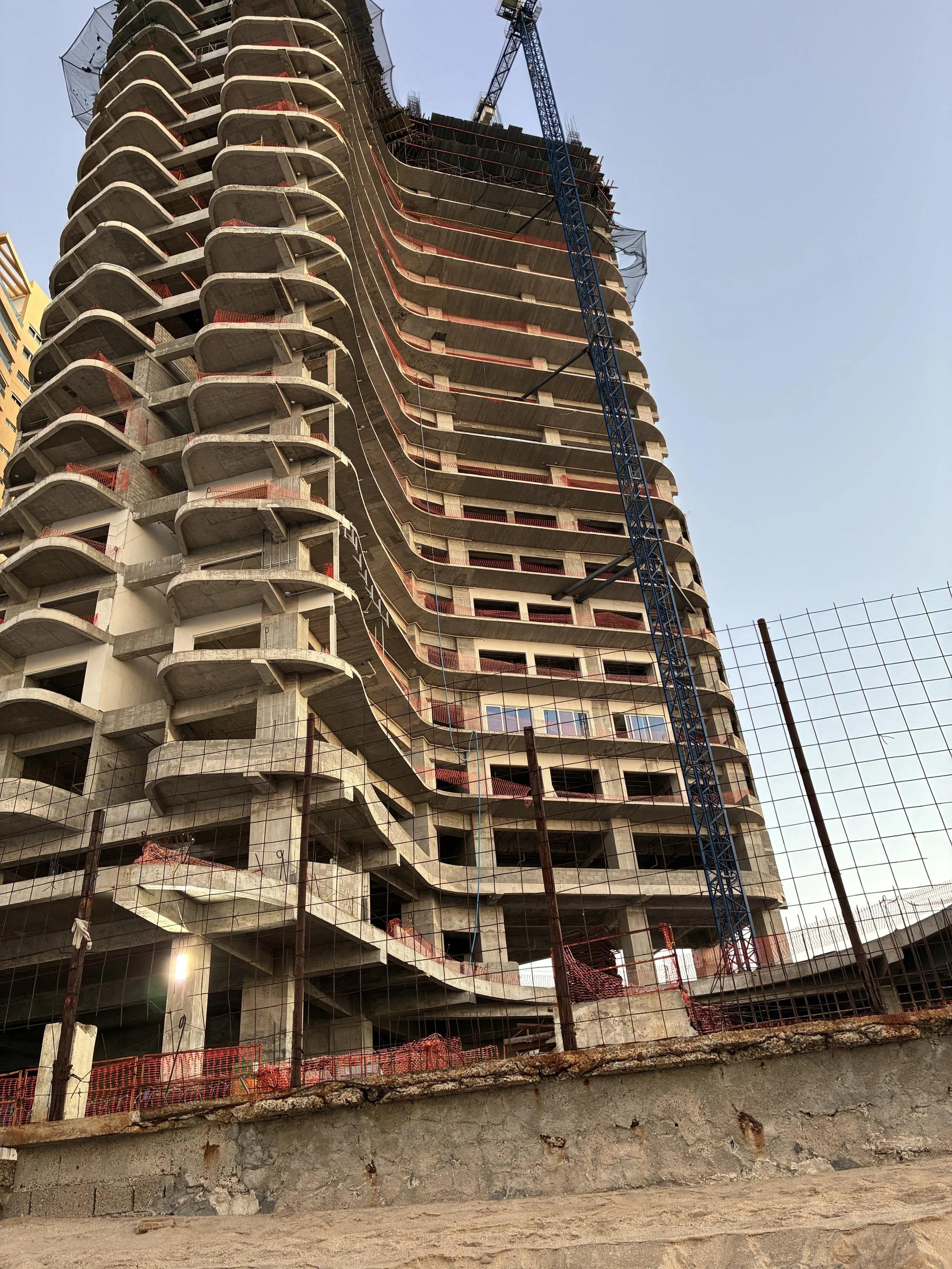 Está es la torre de 30 pisas del Hotel Hyde, lo último en concepto de elegancia hotelera. Visto desde la playa.