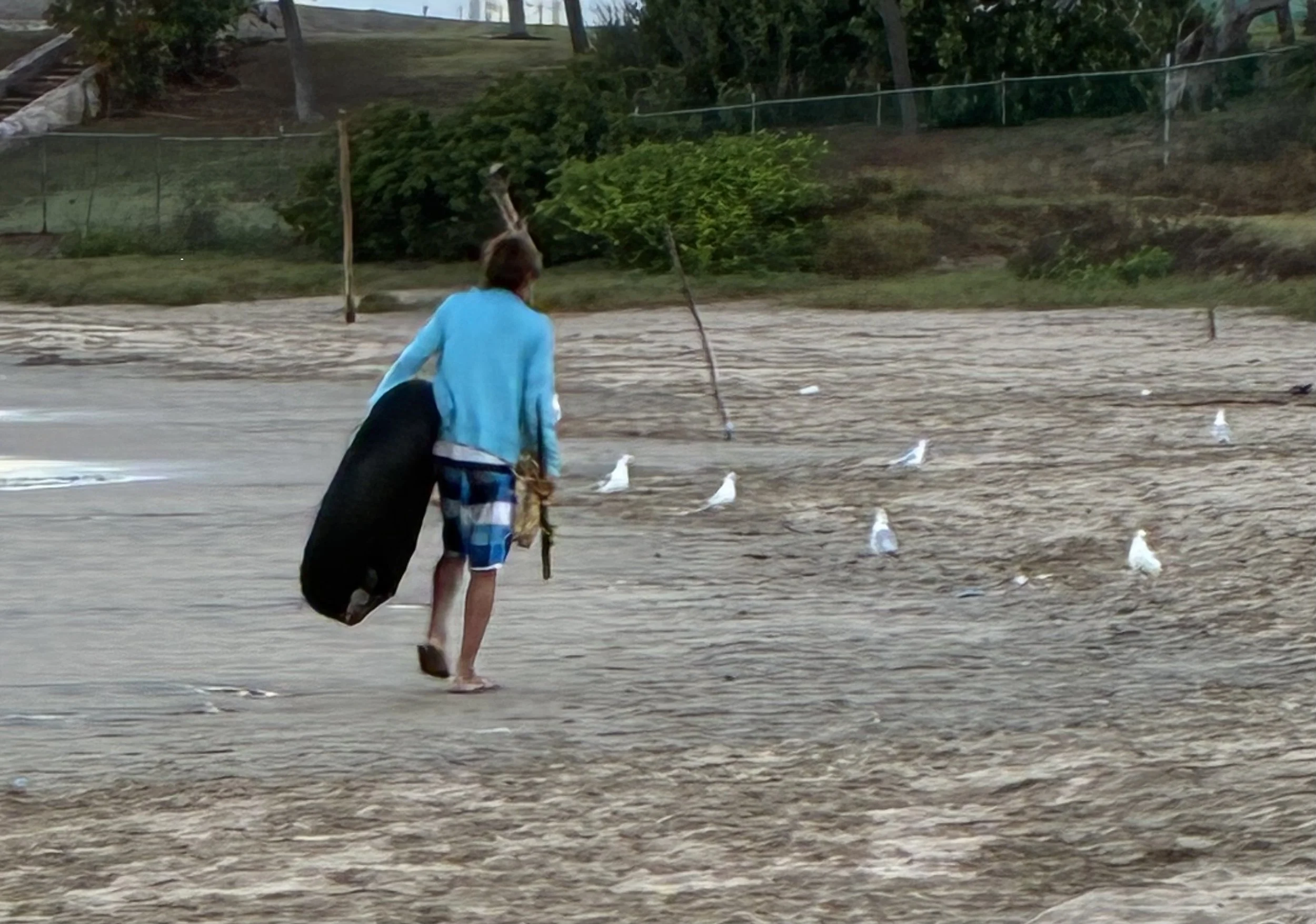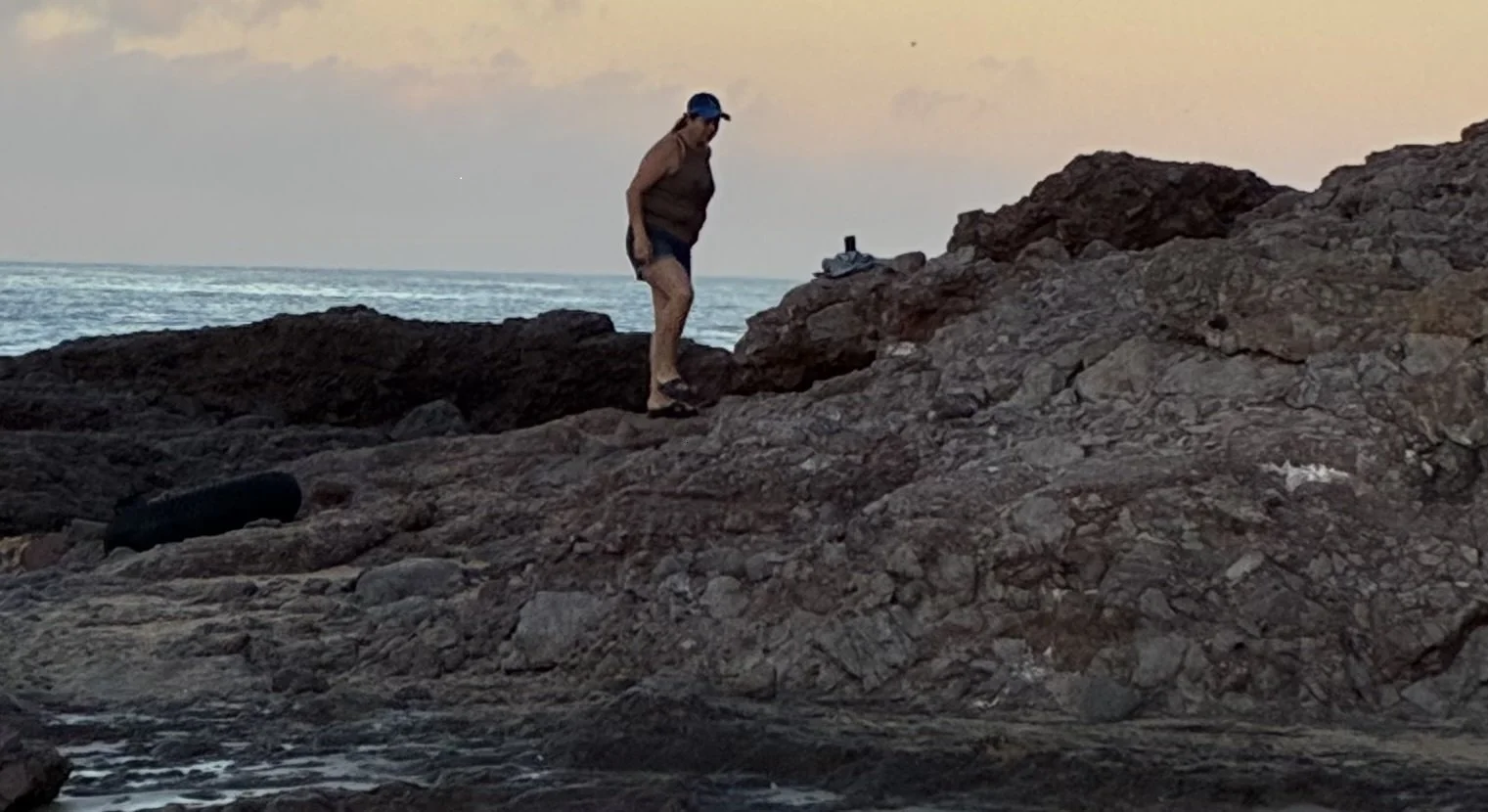 Pasa un pescador de ostión de piedra, enjuto, desnalgado, cabello quemado por el sol; lleva su llanta negra flotadora y la barra para desprender el ostión. Mira tambien a las gaviotas, me mira: “No son pendejas, las degraciadas. No se le comen… Es veneno”. Sigue rumbo a la punta rocosa, donde golpean las olas, más al fondo se pegan los codiciados bivalvos, los mejores del pacífico.