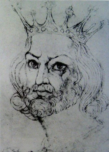 “El Rey Juan”. Dibujo a lápiz del pintor William Blacke. El Rey Juan o “Juan Sintierra”, fue un déspota y mal gobernante, en la época de Robin Hood, pero a Zweig le gustaban los ojos alucinados del personaje. Ese dibujo fue la única pertenencia que conservó después de su huida de Viena, le daba la sensación, durante su peregrinar, que estaba en casa. Los ojos alucinados del Rey Juan fueron su amuleto.