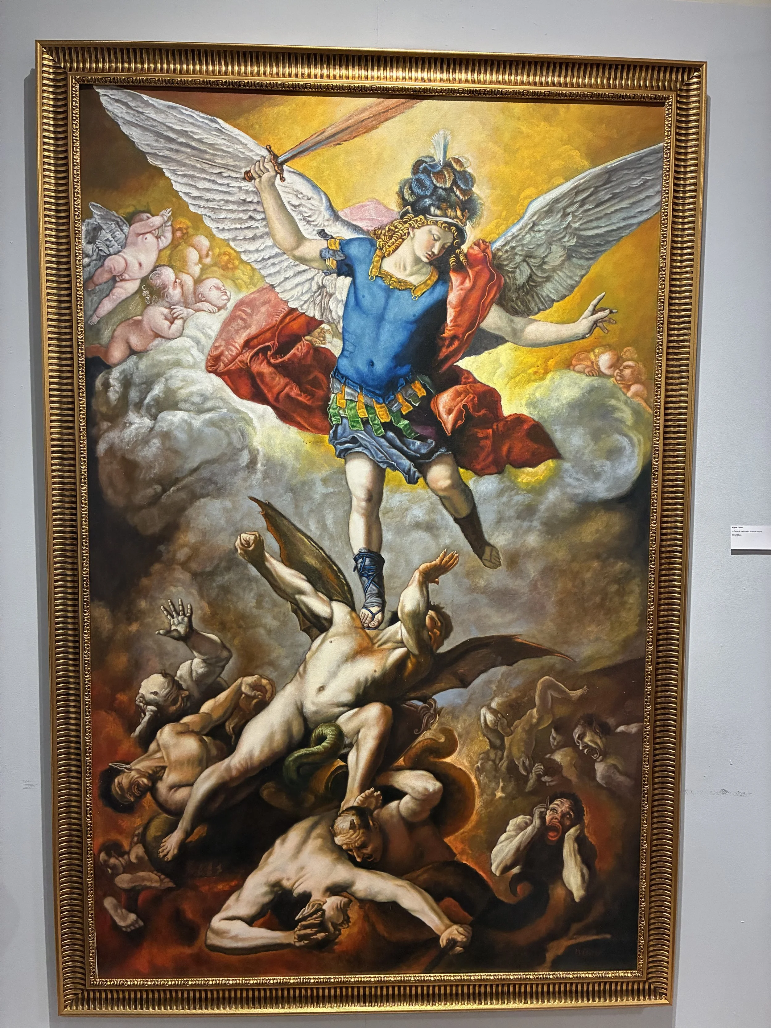 En fin, a lo que voy es que la copia de Miguel Flores, es más luminosa, me gusta más que el original de Giordano. El Arcángel, con su espada flamígera vence a los malvados, que lucen orejas puntiagudas y alas de murciélago (Ramón Gómez de la Serna, decía que el murciélago era “El Espíritu Santo del Diablo”). La escena es como si Omar García Harfuch, el Arcángel policíaco de Claudia, derrotara a los malos del crimen organizado. Deseo navideño.