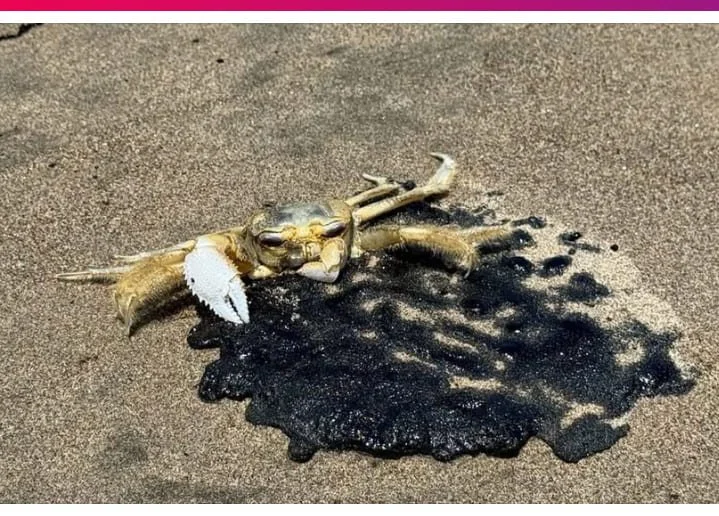 Una jaiba en chapopote.
